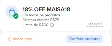 Ganhe 18% off em compras acima de R$79