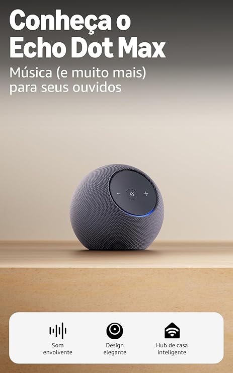 Apresentamos o Amazon Echo Dot Max (Geração mais recente), smart speaker com Alexa, som envolvente e hub de casa inteligente integrado, ideal para sua sala de estar, Cor Grafite