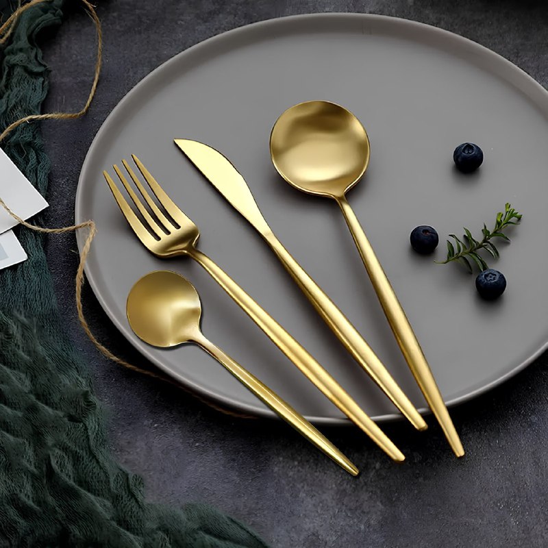 Belifou Kit 24 Peças Jogo De Talheres Dourados