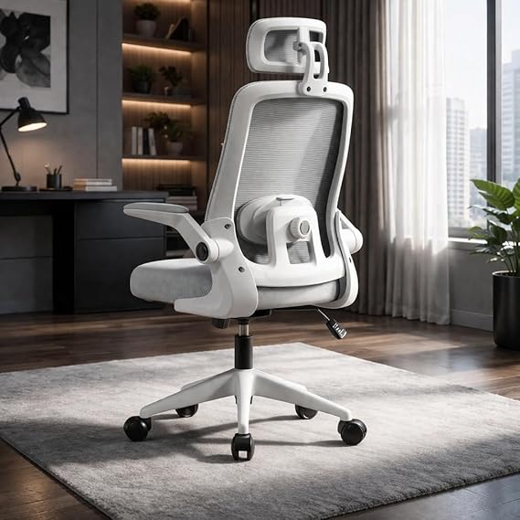 BlidShop Cadeira de Escritório Ergonômica, Suporte 120kg, Ajuste Lombar, Apoio de Cabeça, Tela Mesh Premium, Giratória, Home Office (Branca e Cinza)