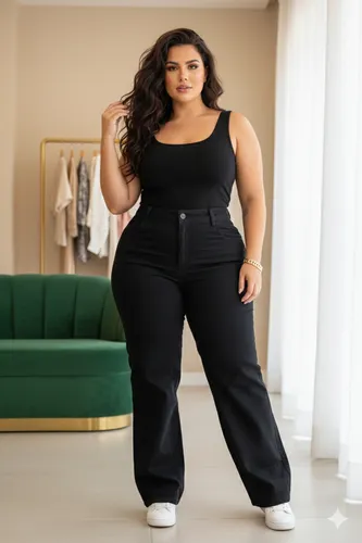 Calça Plus Size Jeans Feminina Wide Leg Levanta Bumbum