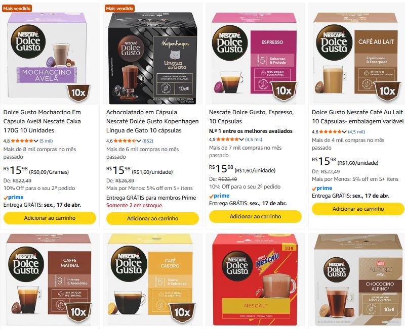 Capsulas Dolce Gusto com preços excelentes na Amazon