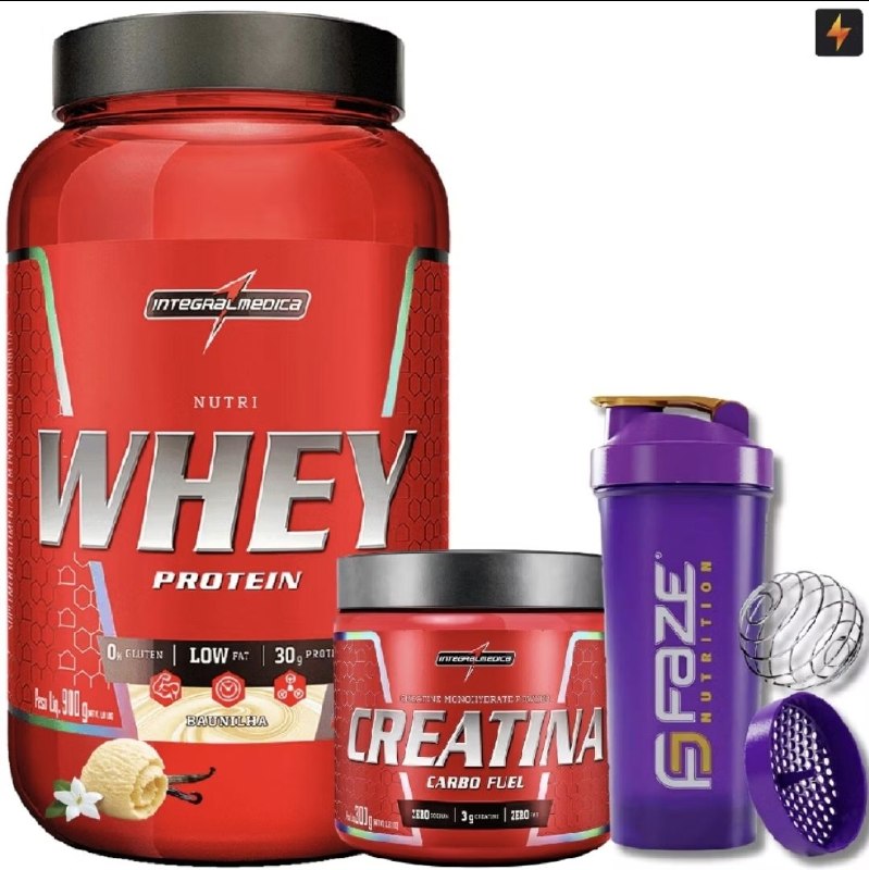 Kit Nutri Whey Pote 900g + Creatina CarboFuel 300g + Coqueteleira