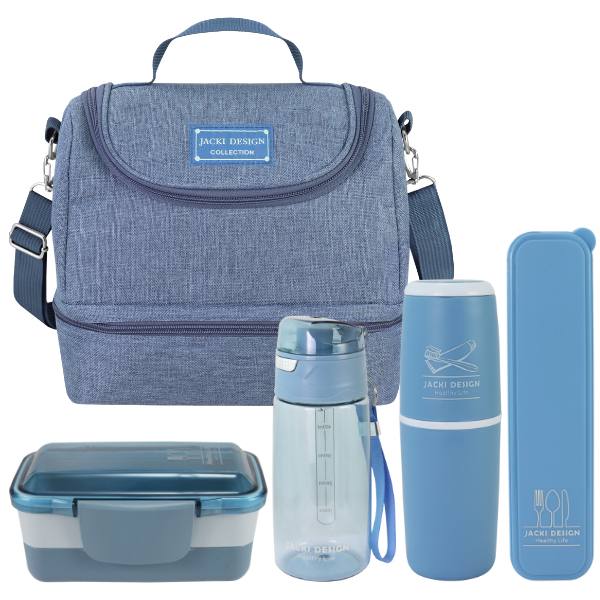 Kit de Bolsa Térmica c/ 2 Compartimentos, Copo e Marmita, Porta Talher e Porta Escova