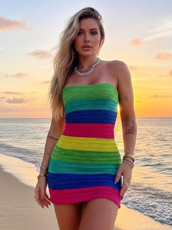 Vestido Feminino Tomara Que Caia Colorido Moda Praia Tricô