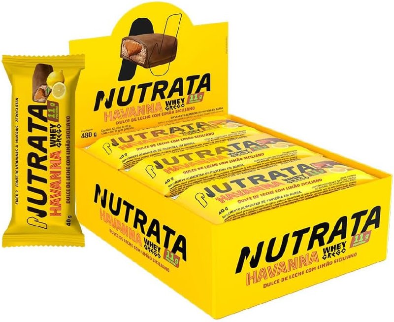 Display 12 Barras Whey Grego Bar Havanna & Limão Siciliano 40g Nutrata