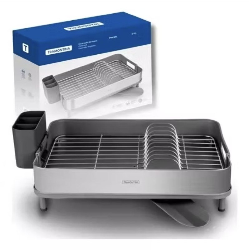 Escorredor de Louça Tramontina em Aço e Polipropileno Com Secador Porta Talheres