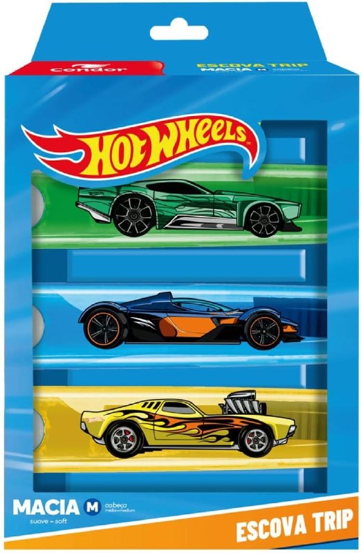 Escova Dental Hot Wheels Trip Condor Cerdas Macias Cabeça M 3 Unidades Multicor