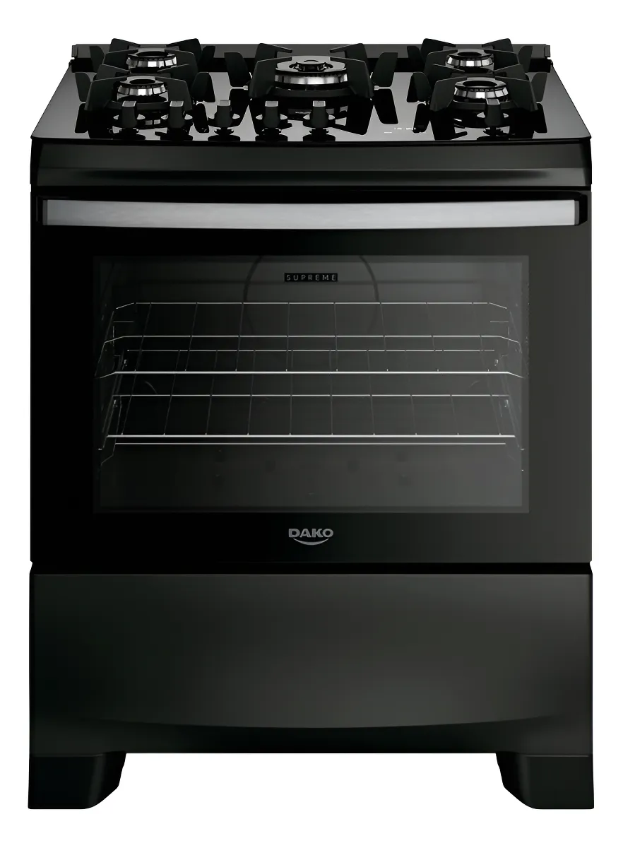 Fogão 5 Bocas Dako Supreme Black Glass Digital Bivolt Cor Preto