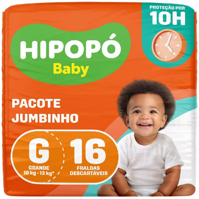 Fralda Hipopó Baby Tamanho G Pacote Jumbinho 16 Unidades Descartáveis