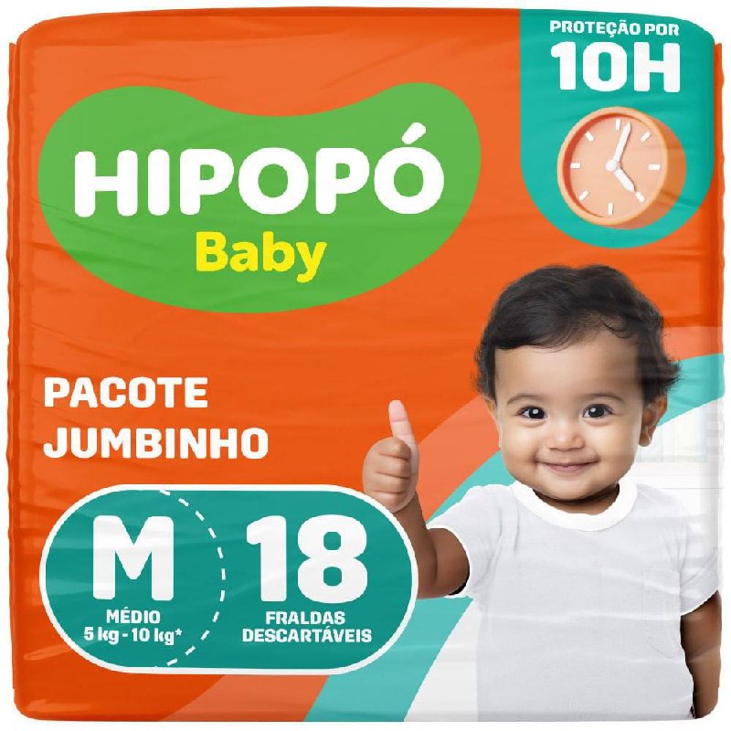 Fralda Hipopó Baby Tamanho M Pacote Jumbinho 18 Unidades Descartáveis