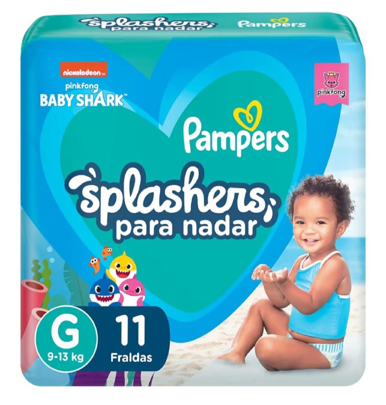 Fralda Pampers Splashers Para Nadar Baby Shark Tamanho G 11 Unidades
