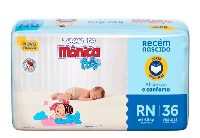 Fralda Turma da Mônica Baby Jumbo RN 36 Unidades