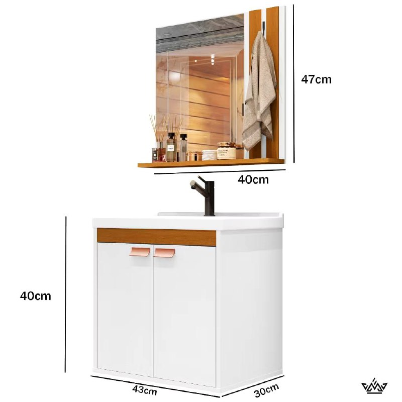 Gabinete Banheiro em MDF Com Espelho e Cuba Pallas Armário Espelheira