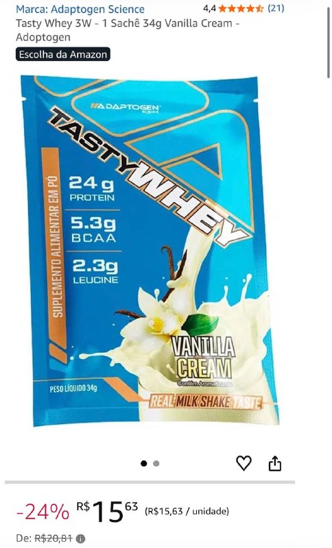 Tasty Whey 3W - 1 Sachê 34g Vanilla Cream - Adoptogen
