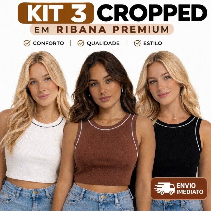 Kit 3 Cropeed Feminina Regata Canelada Algodão Ribana Premium Confortável Casual lisa Basica