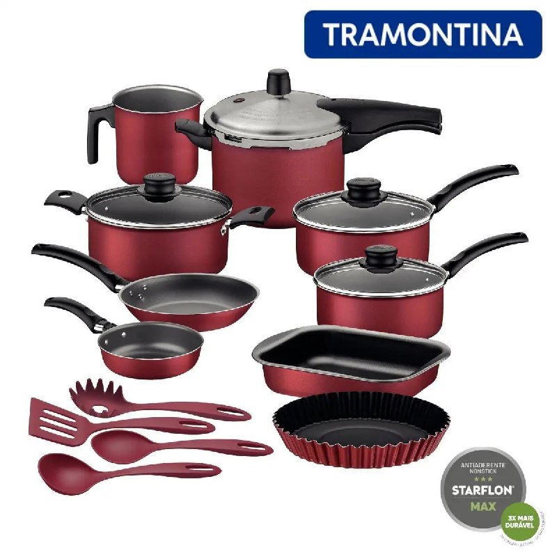Jogo De Panelas Tramontina 13 Peças Com Panela De Pressão e Utensílios