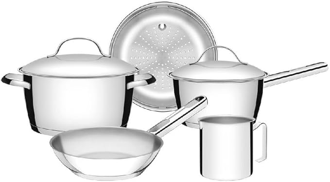 Jogo de Panelas Tramontina Allegra em Aço Inox com Fundo Triplo 5 Peças