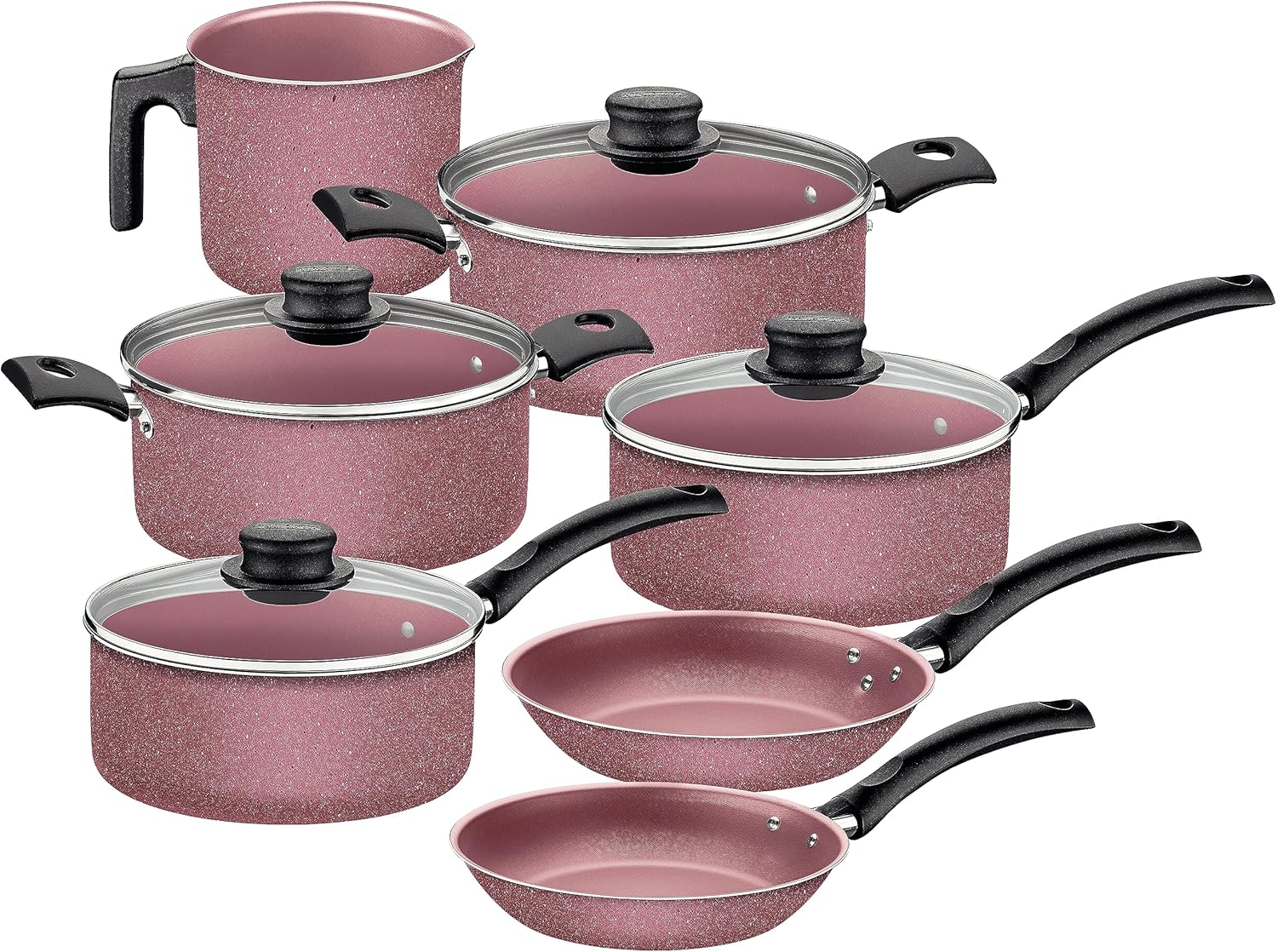 Jogo de Panelas Tramontina Turim em Alumínio com Revestimento Interno e Externo em Antiaderente Starflon Max Rosa 07 Peças
