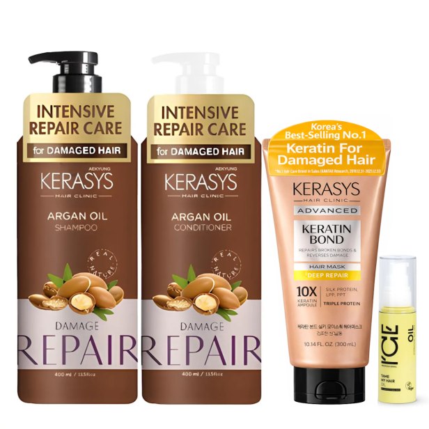 Kerasys & ICE - Argan Oil - Shampoo + Condicionador 400ml + Keratin Bond Deep Repair Mask 300ml + Tame My Hair Oil 50ml