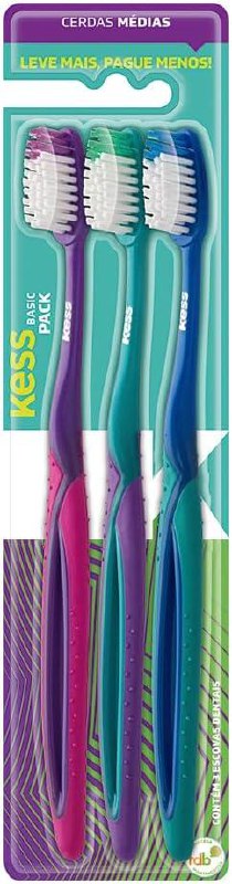 Kess Combo Econômico Com 3 Escovas Dentais Multicor