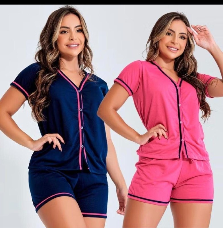 KIT 2 Pijamas Americanos Amamentação - Baby Doll Botão Blogueirinha