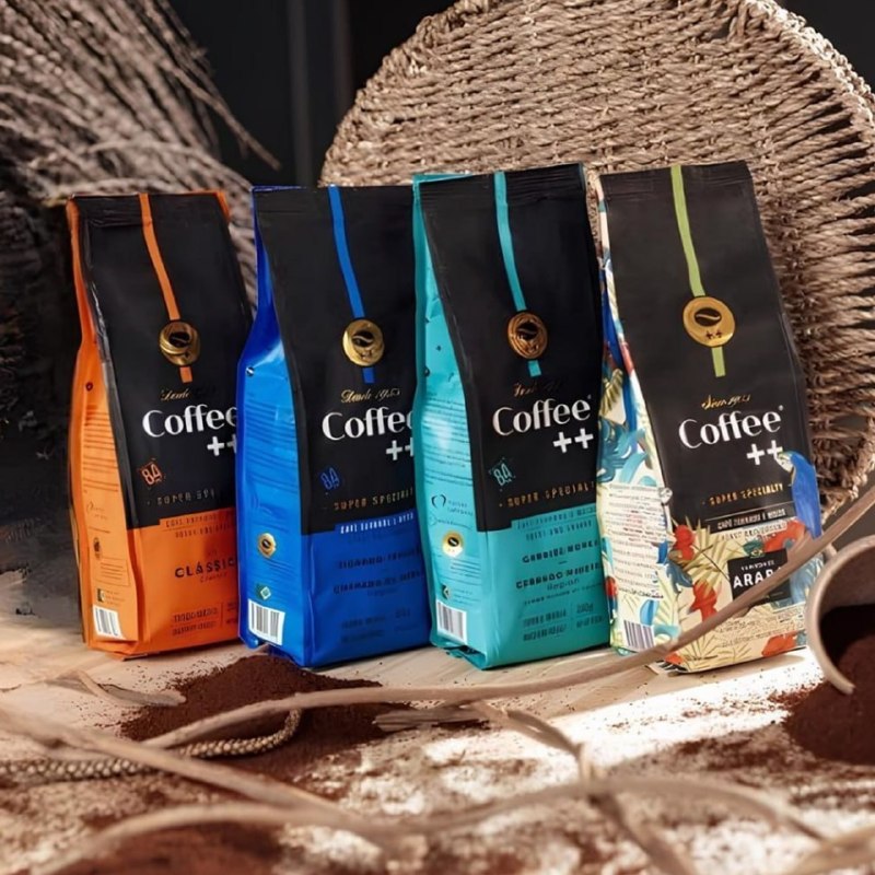Kit 4 Pacotes Café Especial Torrado e Moído Coffee Mais Clássico, Caparaó, Chapada e Arara