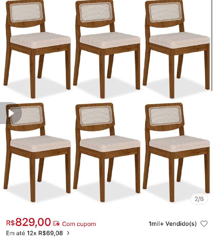 Kit 6 Cadeiras Sextavada Bari Freijó/bouclé Off White - M. Arapongas