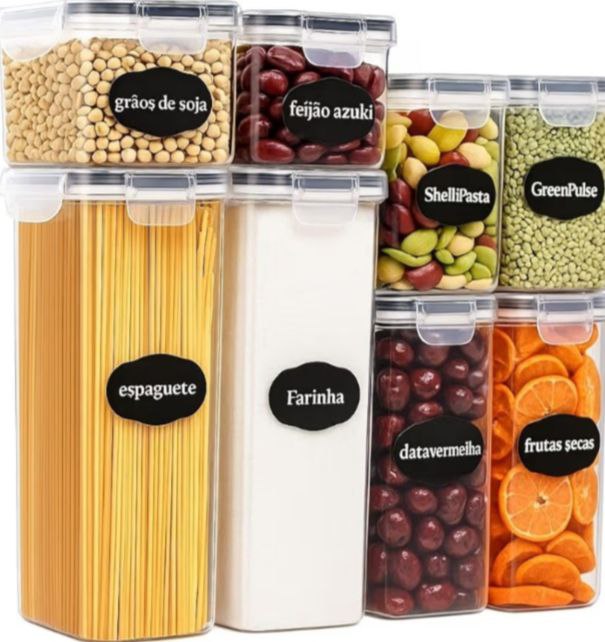 Kit 8 Potes Tampa Hermética Porta Mantimentos Transparente Alimentos Cozinha Organizador