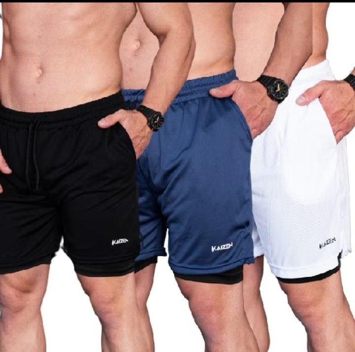Kit com 3 Shorts Masculino 2 em 1 Compressão