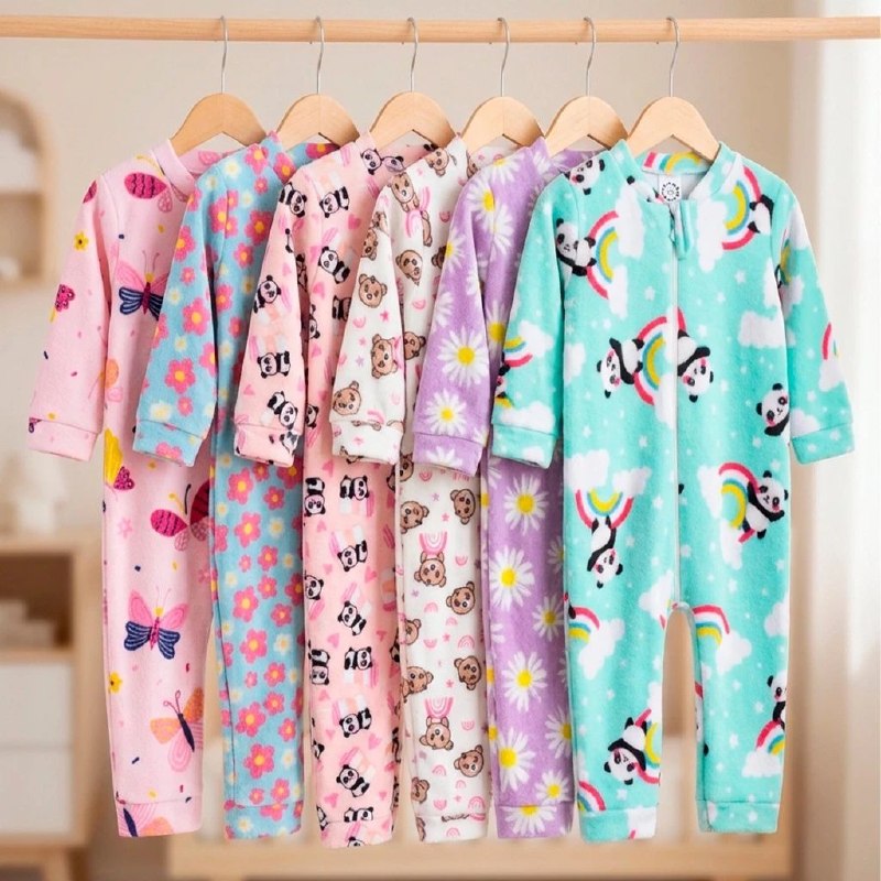 Macacão Bebe Menina Roupa Inverno Soft Peluciado Com Zíper Quentinho