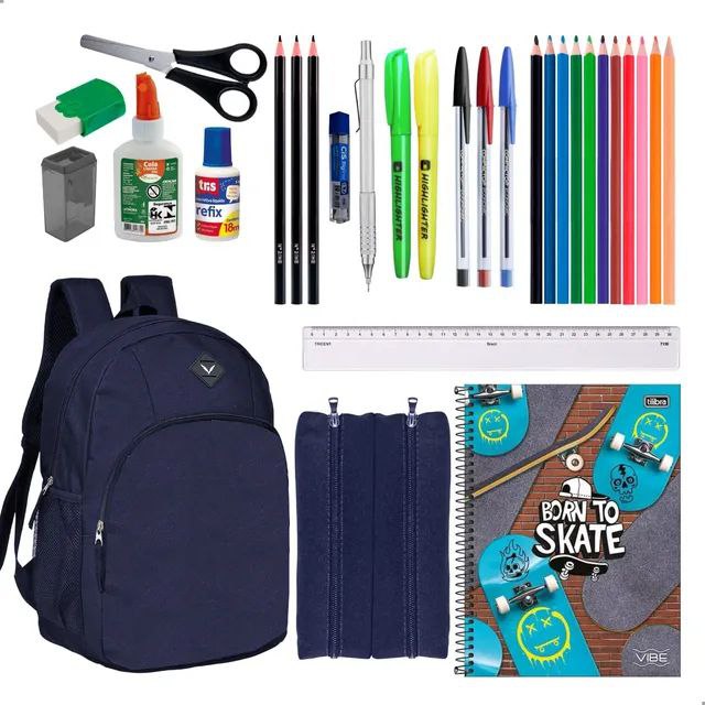 Kit Material Masculino Escolar Fundamental Medio Faculdade