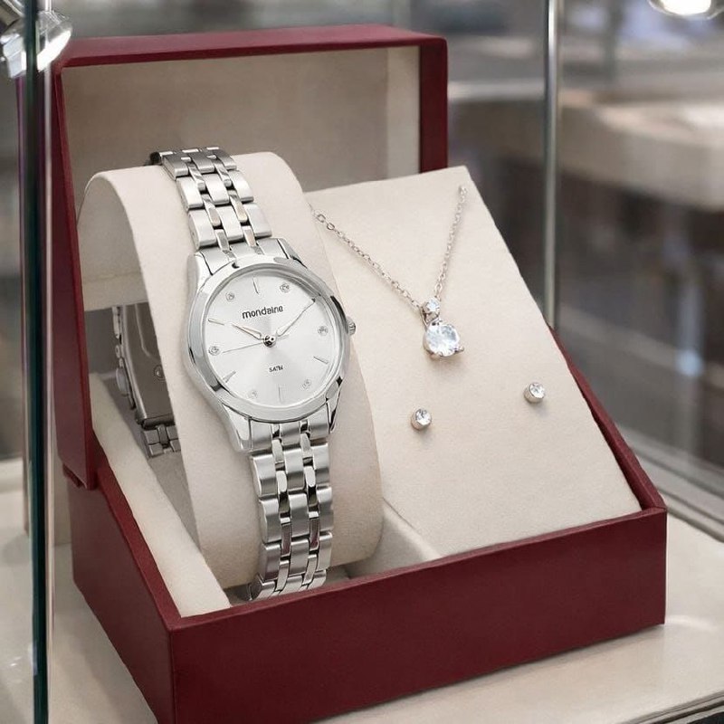 Kit Relógio Mondaine Prata Feminino 32610L0MKNE2K1