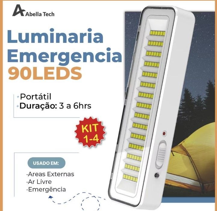 Luminária Emergência Lâmpada Portátil 90 Leds PRO Recarregável Bivolt Luz Branca Fria