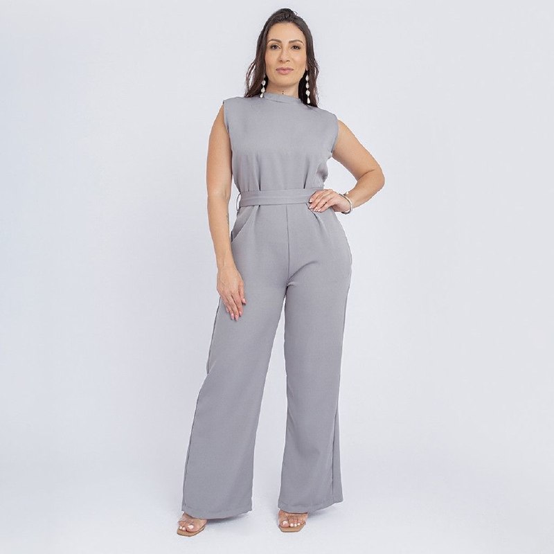 Macacão Alfaiataria Feminino Regata Gola Alta Social Cinto Premium Elegante Pantalona