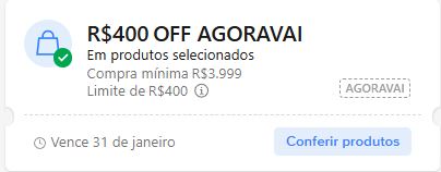 Ganhe R$400 off em compras acima de R$3.999