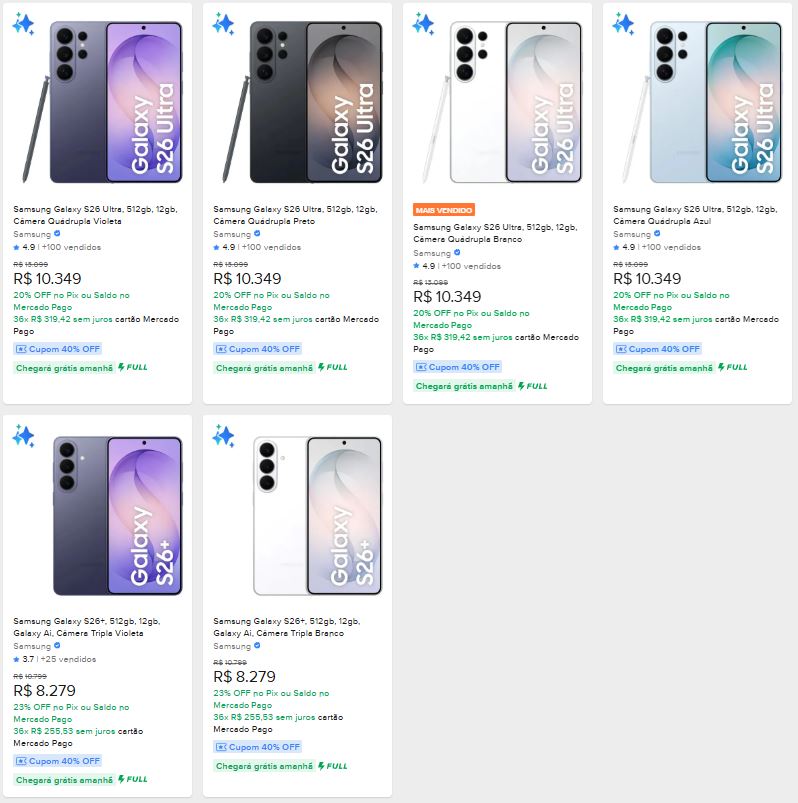 Novo Cupom no Mercado Livre em Toda linha S26 da Samsung