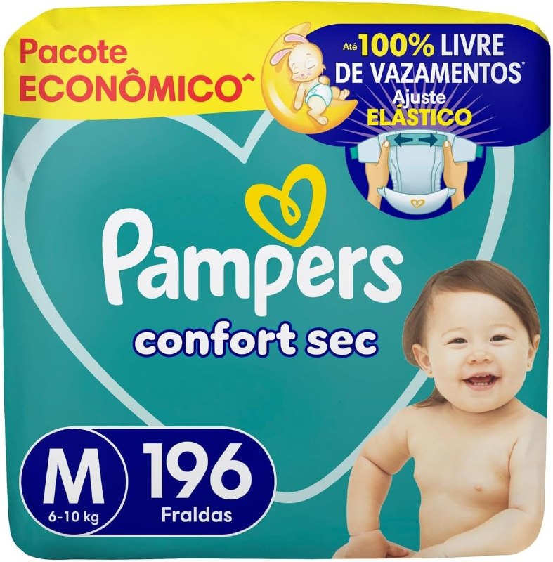 Pacote c/196 Fraldas Descartáveis Tamanho M Pampers Confort Sec