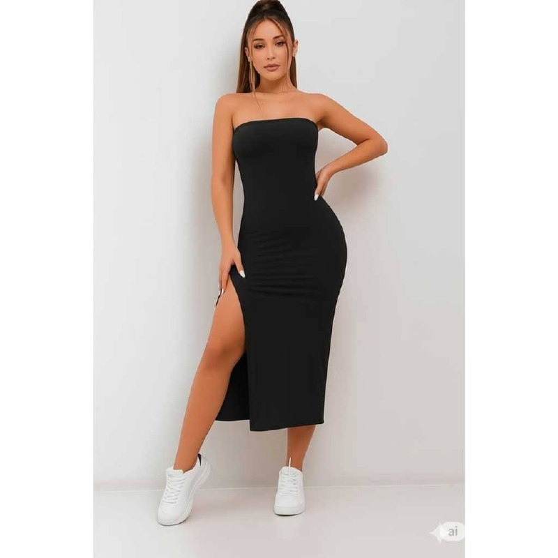 Vestido Tubo Midi Fenda Lateral Sem Alças Casual Sexy Festa