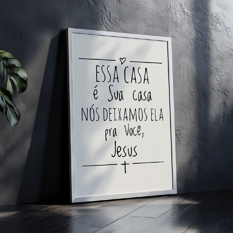 Quadro Decorativo Frase Essa Casa É Sua Casa Jesus Cristão Fé Religioso Motivacional Parede Sala