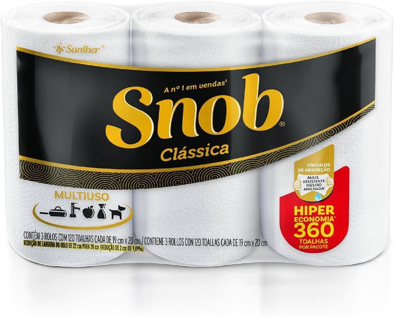 Snob Papel toalha multiuso folha dupla branca hiper 360fls, 3 rolos