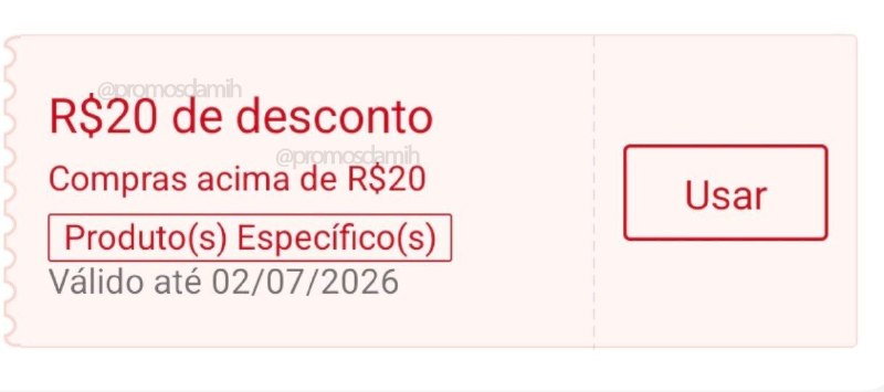 🎟️ Use o cupom: R$20 OFF em compras acima de R$20