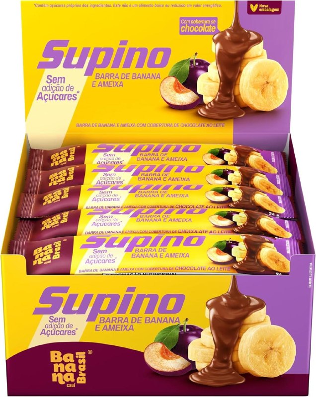 Banana Brasil - Barra De Frutas Supino Zero Banana e Ameixa Com Cobertura Chocolate Ao Leite